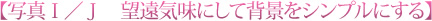 写真Iのように広角気味に撮ると背景が広く写って邪魔なモノまで写ってしまいますが、写真Jのように望遠気味に撮ることで、邪魔なモノが省けるのと同時に、背景がぼけることによって人物が引き立って見えます。