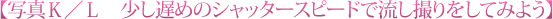 1/500秒で撮影した写真Kは子どもの動きが止まっているのに対し、1/60秒で撮った写真Lは背景が流れ、スピード感に溢れています。動きが出たぶん、生き生きとした写真に仕上がりました。