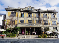 仁王門前で目を引くのが「藤屋御本陣」です。仁王門再生建築に腕をふるった越前宮大工の手による大正浪漫にあふれたアールデコ様式。