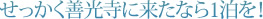 しかし、善光寺をお参りするのなら、パワーがもらえる宿泊施設を選んではいかがでしょう。