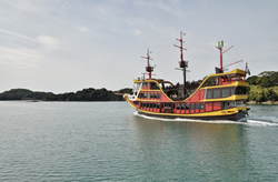 2015年4月1日に就航した海賊遊覧船「みらい」。なんと遊覧船としては本邦初の電気推進船だ
