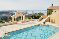 建物のデザインといい、雰囲気といい、まるでエーゲ海の島々にあるリゾートのようだ。眼下には佐世保の街並みと島々の景観が水平線まで続いている。