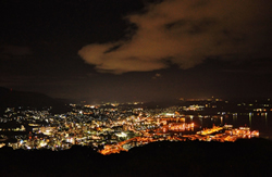 ベランダから見る佐世保市の夜景。右手前は在日米軍の軍港になっている
