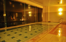 温泉施設には、大浴場の弓張温泉「彩海」が併設され、大きなガラス窓越しに見る夜景もまた、格別なものがあった。