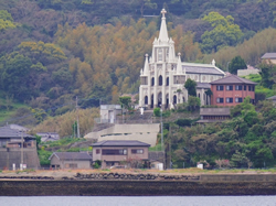 「江上天主堂」はゴシック調の立派な教会ではありませんが、近隣のキリスト教徒である漁師たちの熱意が建てたものです。厳しい生活の中で当初は自宅でミサを捧げていた人たちが作った教会は、ロマネスク風の窓がある海に似合う教会です。