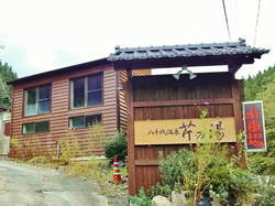 山を下りほっとして走っていると、まもなく左手に「八千代温泉芹の湯」という看板が見えてくる。