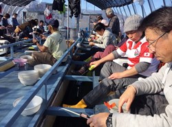 早上がりを希望すれば12時、13時、14時に迎えに来る小舟でドーム船を離れるのも可能だが、ワカサギと対峙している時間が惜しくてマスを離れられない。