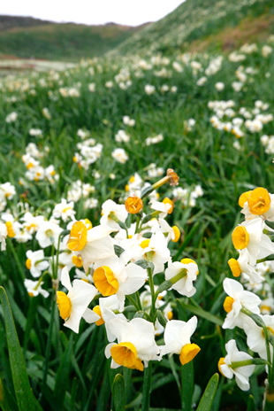 写真C、写真Dは伊豆半島の先端にある爪木崎のスイセンの自生地で、シーズンには多くの観光客が訪れる人気のスポットです。