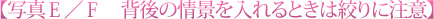 背後の風景を取り入れるときに注意したいのは、背景がぼやけすぎないことです。情景がぼやけてしまうとただの模様になってしまい、せっかくの雰囲気までぼやけてしまいます。