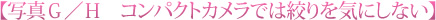 写真Gは一眼レフ、写真Hはコンパクトカメラで、同じ範囲を撮った(絞りはいずれもF5.6にセット)写真です。