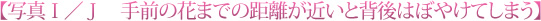 背景をクッキリ見せたいなら、手前の花はあまり近すぎないようにしましょう。