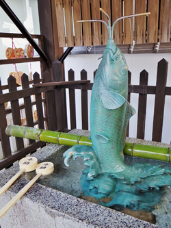 本来は手水でしたが、人々がここで手を合わせるうちに鯉に水をかけて祈願すると願いが叶うという言い伝えが広まり、いまに至っています。
