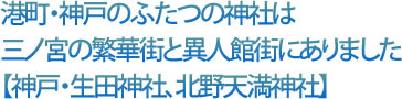 神戸…。異国情緒ある女性たちに人気の旅先です。港地区が整備され、新しい人気スポットも生まれています。港のそばの繁華街・三ノ宮地区には生田神社があり、高台の北野の異人館街には北野天満神社があります。それらは地元の人に親しまれている「パワースポット」でした。