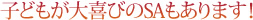 そう、SA&PAは子どもたちへの対応も考慮しており、ベビールームやミニ児童遊園、子どもたちが大好きなグッズで歓迎しているところもたくさんあります。