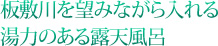 ここは板敷川に面し、入湯料を支払えば露天風呂に入ることができる。また、食事をすると無料でお風呂に入れる。
