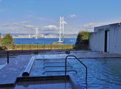 淡路島側にできた橋を見る露天温泉(美湯松帆の郷)