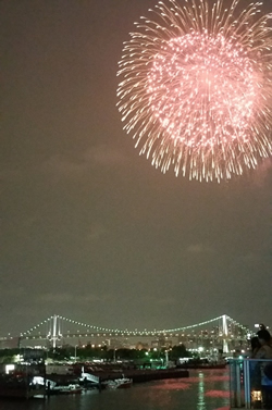 東京湾大華火祭ではレインボーブリッジと花火の新旧日本の技術をたっぷり鑑賞させてもらった。残念ながら東京オリンピック選手村建設のために、当分休止となる見込みだが…。