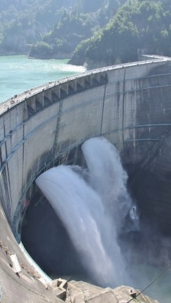 日本最大のダムは黒部ダムであり、その高さは186m。放水シーンは迫力たっぷりだ。