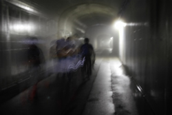 この名湯に2時間半で歩けるというのは、実はダムのおかげなのだ。日本で第2位の176mの高さを誇る高瀬ダムが完成したので、そこまで相乗りタクシーで行き、最初はダム沿いの電力会社が通した整備された道を行く。トンネルができているおかげで、直線的に目的地に向かえる。