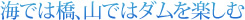 山間部に掛かる歩行用の吊り橋なども話題を呼んでいるが、大型建造物といえば海では橋、山ではダムとなる。