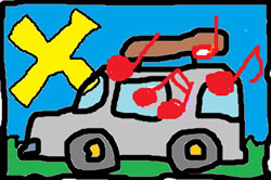 初めてキャンプまでの道程は快晴! 高原までの道も爽快で、ついついオーディオからはご機嫌な曲が流れていて…。