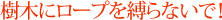 最低限、タオルやバンダナを樹木に巻いた上からロープを結びたいものですが、まずは正しいペグダウンとロープの結び方を覚え、しっかりタープやテントを張るコツを覚えてください。