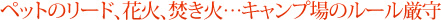 しかし、キャンプ場は周囲の環境やキャンプ場内での安全を考慮し、さまざまな独自のルールを設けています。