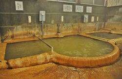 床のタイルの色は茶褐色に染まり、湯船も石化して盛り上がっていた。成分濃度が高く、泉質が濃いのだ。