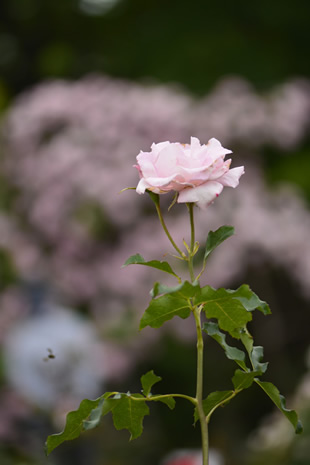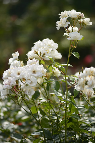 どちらがよいかは状況によって変わってきますが、周囲のバラ園の雰囲気が見える写真Hのほうが印象的に見えます。