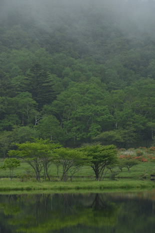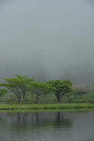 写真I/写真Jはその例で、山から霧が下りてきたタイミングを狙ったものですが、主役の木の見え方は大きく違っています。自然の雰囲気が感じられ雄大に見える写真I、対して主役の木がクッキリと浮かび上がっている写真J。