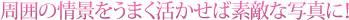 見たままを撮るのではなく、少しだけ視点を変えて素敵な風景を見つけてみてください。