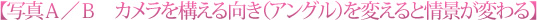 この2枚の写真で変わったのは背景の描写です。カメラのアングル(カメラを構える向き)を変えると背景が変わります。