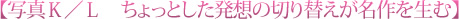 ただ見ているだけでは通り過ぎてしまう場所でも(写真K)、視点を変えて見てあげるだけでキレイな風景が見えてきます(写真L)。