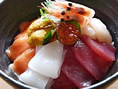 通常の海鮮丼とは少々異なり、福井県若狭名物の「小鯛の笹漬け」といった仕事がしてあるものが主流で、それに新鮮なお刺身などが添えられます。日本海が感じられるごはんです。お試しあれ。