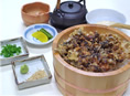 吉和は清流の美しさで知られますが、そこで栽培されたワサビをふんだんに使ったグルメ。のりワサビ+味噌ワサビの辛さの競演を楽しんでください。空腹も眠気も飛ばすすっきりメニューです。