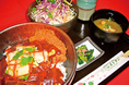 満腹感を味わいたいのならカルビ!間違いのない選択です。福島産のエゴマ豚を使い、キムチとしらがネギで食べる豪快な丼。でも、安心してください。上質ポークはあっさりと食べられます。