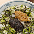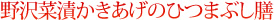 「中央自動車道もいよいよ信州に入ったのだ」感満載のごはんです。野沢菜と塩イカをかき揚げにした変則ひつまぶしで、そのまま食べてもおいしく、ダシをかけてもさらにおいしく…。ぜひ!