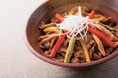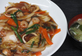 イカ、ベビー帆立などの海鮮にニンジン、タマネギ、白菜などを加えて強火で炒め、そこに黒醤油ベースのタレをプラス。ボリュームたっぷりなだけでなく、ニラがスタミナを補ってくれます。