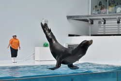 クラゲだけではなく、大空を望む吹き抜けのプールでは、アイドルのアシカがスペシャルステージを披露してくれる。