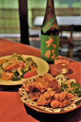 ビールでのどを潤すと、すっかり調子に乗り、地酒の「大那」4合瓶を注文してしまった。