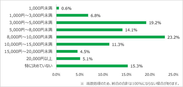 1位が8000~1万円未満で約23%。むしろ、1万円以上の回答は半分にもなりません。
