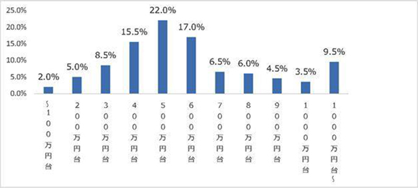 下の図は「現在使用しているキャンピングカーの購入金額は?」という設問に対する回答です。