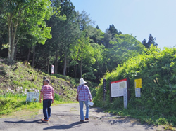 「森を大事にしなさい…」といった主旨の昌幸の文書が残る山家神社の境内には小さなお土産店ができており、観光客が覗いていました。