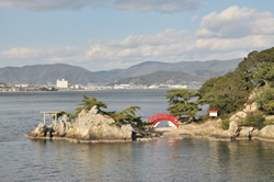 礫島は浜名湖で唯一の島で、湖の西北、三ヶ日町大崎半島から400mほど沖に出た場所にある。