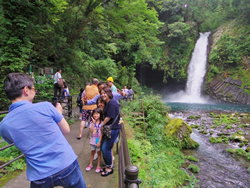 立ち寄った観光客が釣り竿を借りて、魚釣りに夢中になっている。やはり、この地は明るい笑い声がしっくりくる。とはいえ、浄蓮の滝で釣り体験ができるとは、今まで知らなかった。
