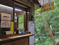 滝壺の近くにもワサビを売るお店やおみやげ店があるのだが、そのひとつに「天城国際鱒釣場」があった。