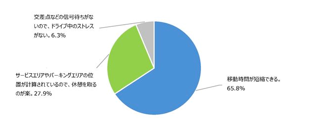 自動車道を第一の選択肢としているドライブ好きにとって、その理由もアンケートで調べています。