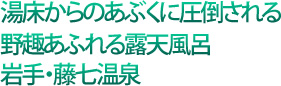 藤七温泉は八幡平山頂に近い海抜1400mにある東北最高峰の一軒宿。雄大な八幡平や岩手山の景観と同様、野趣あふれる露天の「ぶくぶく自噴泉」が圧巻だ。