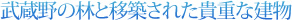 それは1935年に建設された北多摩地区唯一の規模を誇った、旧府中尋常高等小学校の木造校舎の一部。その奥には明治天皇がウサギ狩りの時に休憩・宿泊所として利用した府中宿の大店。さらに、明治時代創建の蔵造りの店舗や旧府中町役場庁舎が緑の中に佇む。