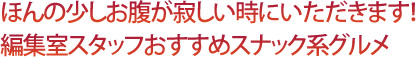そこで今回は、各スタッフがおすすめするスナック系グルメをご紹介します。